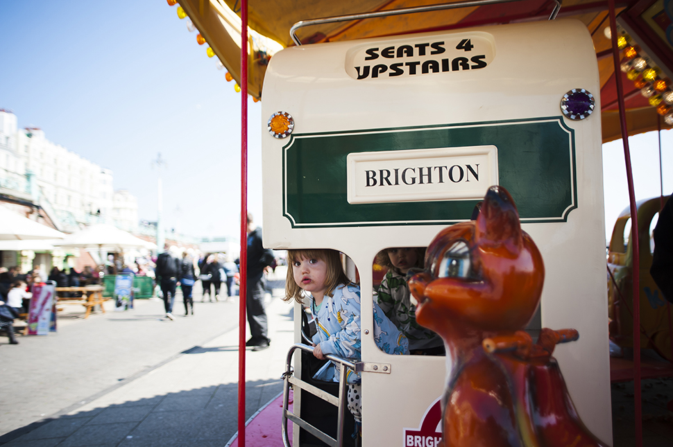 We used to go to Brighton all of the time when I was small. My grandparents were fearless; they would take my sister and I anywhere, in the car or on a plane, for days or weeks at a time. And it just so happened that they lived an hour or so from Brighton, and so we came to know it well. When I think of days out with my grandparents, I think of pink sunglasses taking up half of our faces, pebbled beaches, and that tiny caterpillar ride that went through the apple, that my grandparents placated us was a roller coaster. It’s bittersweet. My grandmother died when I was twenty-two or so; after all of the effort she put in to raising me, she never got to see me as a mother. And my grandfather is so proud of us, and so enchanted by his great-grandchildren, but he lives too far away for day trips now. And I miss them.