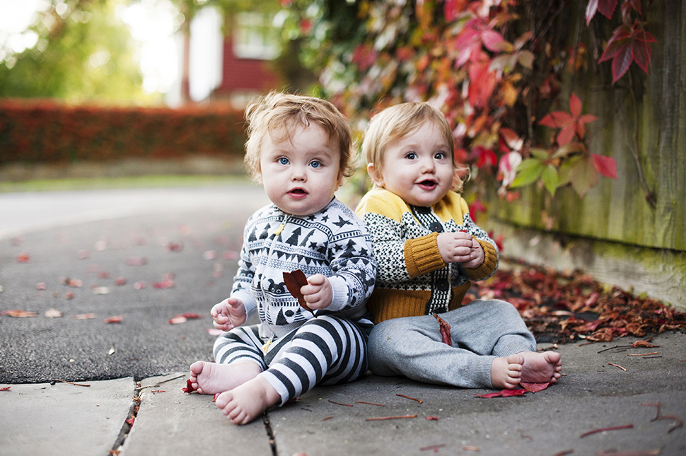Baby brand collaborations make my heart sing. There’s little that I enjoy more than when a brand sends me their products to try out, style and photograph. When Tracey from the Bonnie Mob and I were initially discussing this review I told her to go ahead and dress the twins herself because I loved everything on their website – seriously, it’s all gorgeous and you should go look – and whatever she sent would be a pleasant surprise. The colours are fab, with the yellow and mustard providing a pleasing pop of colour against the monochrome. As you can see, these outfits look fantastic against an autumn palette but I can see the monochrome translating well into the winter wardrobe as well.
