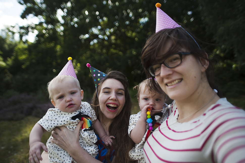 Nonetheless, there are memories that I treasure. Olympia’s first smile, disproportionately powerful for such a wobbly, gummy thing, her first-to-me steps and the way that she fell, laughing, into my arms. Embla’s little copycat games, hands-on-the-head, the way that she is startled whenever we speak to her, how she laughs out loud with delight. Her twinkle-star summoning hands when she wants to be held, which is all of the time. And they know, Polly especially. They might see less of me than they do their other mummy, but they know that they are mine too. Our daughters.