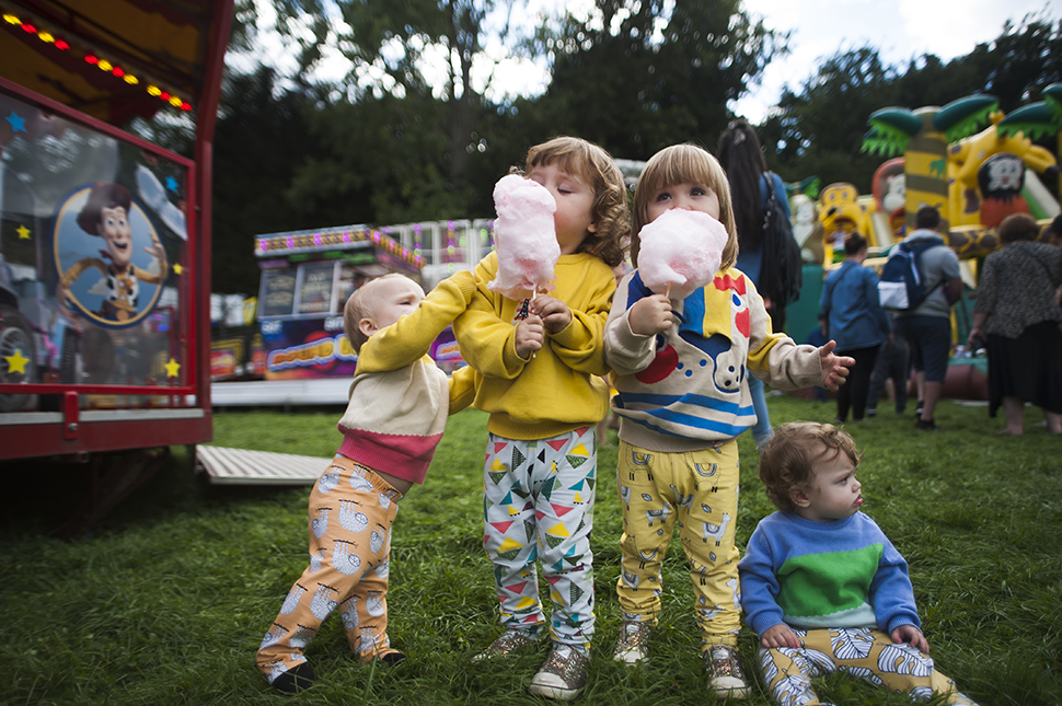Candy floss. Lysander didn’t know what to do with it, and rubbed it through his hair. Oh, my silly boy. And my little Olympia snatched a handful and sat, so pleased with herself, cramming pink fluff in her face. I want these moments to last forever. I never thought that I could be so happy and yet here we are – two mothers with a tribe of little ones, lights flashing and music reverberating through our being and my heart beating noisily in my ears because this is it, this is what I always needed and never even knew.
