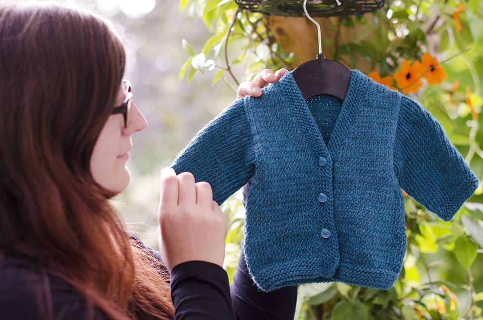 I opted to leave the tassels off of my cardigan because I loved the way it looked without. This is such a sweet pattern; I love the neckline and the roomy sleeves. I ended up knitting mine a little shorter than the pattern called for because I felt I didn’t need it to be as long. Knitting Gifts for Baby is full of gorgeous patterns, including but not limited to the Cable Cape, adorable Striped Pants (I seriously want to make these in every colour – how practical?), the handsome horseshoe pullover, and the Papoose that I’m determined both boys need, possibly in multiple colours. If you want to find out more about Mel Clark and her beautiful knitting, check out her site, Slip Slip Knit.