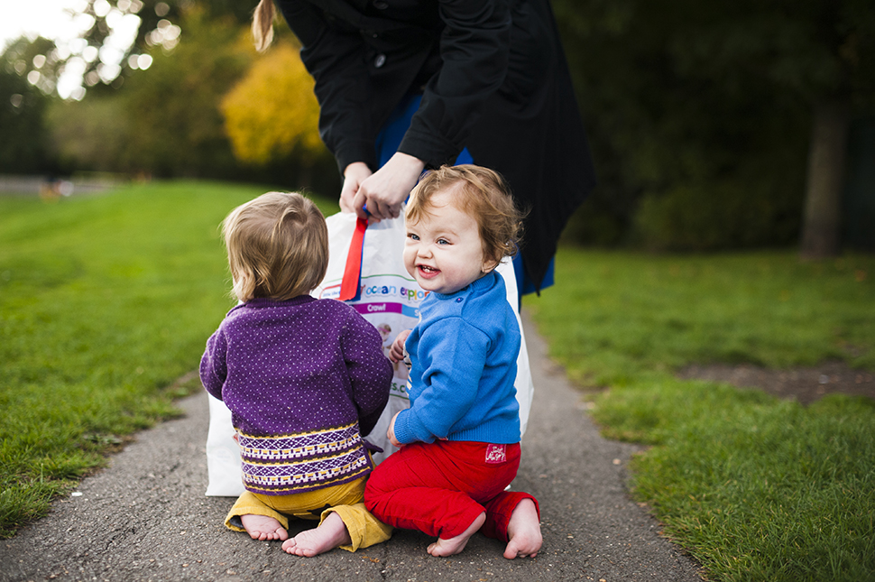 So what did my little ones make of their new toys? As you can see we didn’t even make it home from the train station before they were plucked out of the pram to investigate the bag – it was proving impossible to walk beside the pram as they kept grabbing hold of it and trying to pull it toward them! Clever babies must have known that there was something for them in there..!