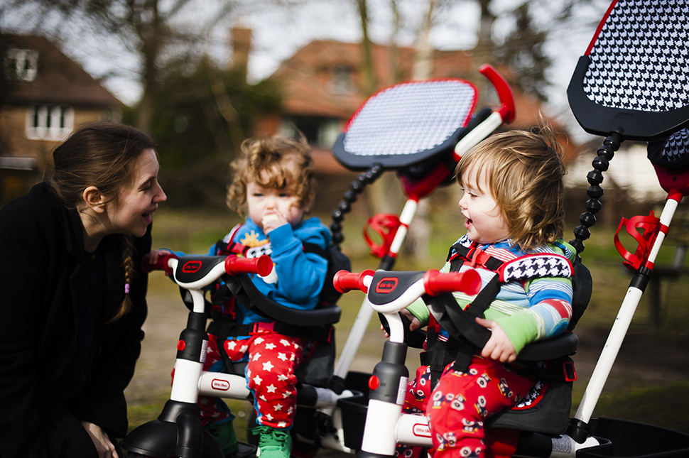 I suppose the downside for us is that each trike really does require one adult to push – one of us couldn’t take two out. Still, they would be fantastic for a parent taking her toddler to pick up an older child from school, and they’re ideal for a park trip or just a jaunt out to break up the day. They’re not just a functional method of transportation either, we’re looking forward to taking off the handle and letting the twins loose with them in the garden once they’re big enough to understand how to pedal!