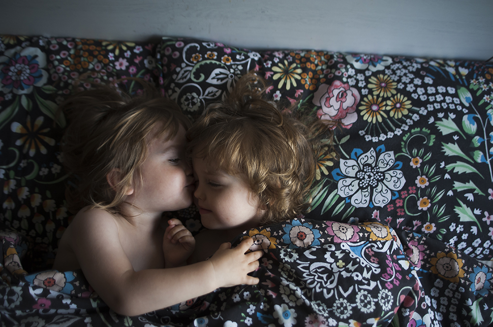 You are two-point-five and you are hilarity and rage, empathy and frustration, simmering, simmering, and you boil over fifteen times in an hour. You are constantly tugging at that invisible umbilical cord that connects us, testing us, pushing us away and pulling us back again, back again, your warm, soft, small bodies curled into us as though you could will yourselves back into the womb. Even now, in the height of summer, I cannot doze in my dressing gown without you declaring yourselves to be cold, without you demanding to be tucked up in my clothes with your soft, knotty heads poking out of my neckline like baby kangaroos. And you are so fearless. You will climb anything and leap from any surface: table tops, window sills, landing on your toes and then sprawling, face-first, across the carpet. Your sisters think that you are the funniest things, and you are.