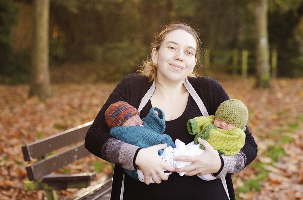 (This picture was taken 47 hours after the caesarean! It definitely shows, but I hope that you can also see the love and the pride. And oh! Kirsty knitted the hats and cardis – how clever is she?!)